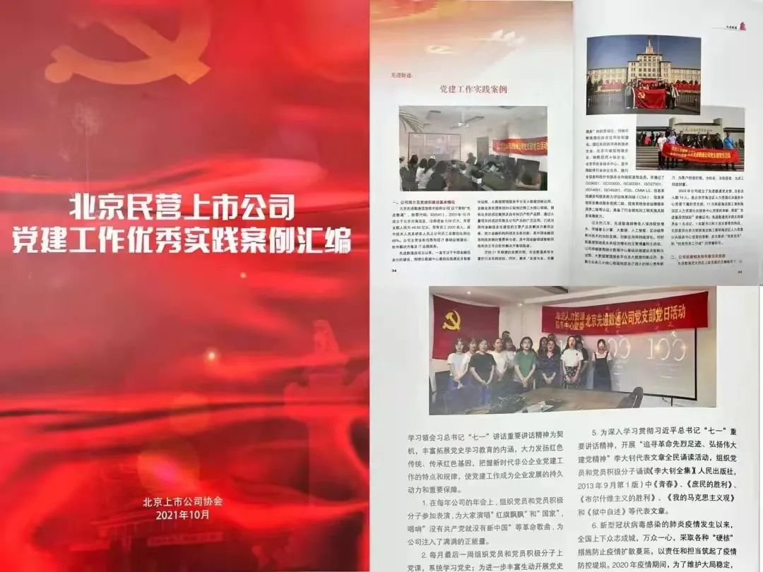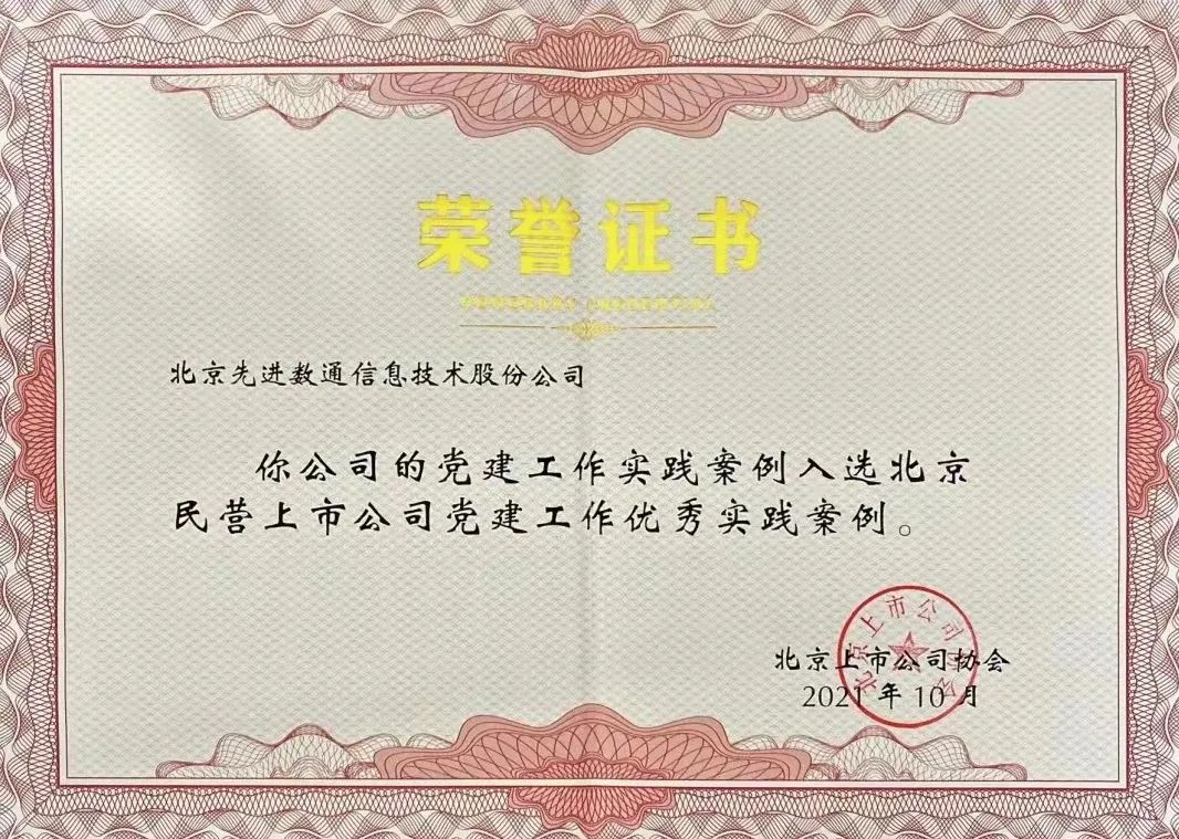 近期,北京上市公司协会授予北京Ebpay官网信息技术股份公司荣誉证书,Ebpay官网党建工作实践入选北京民营上市公司党建工作优秀实践案例,相关党建活动已收录在《北京民营上市公司党建工作优秀实践案例汇编》。